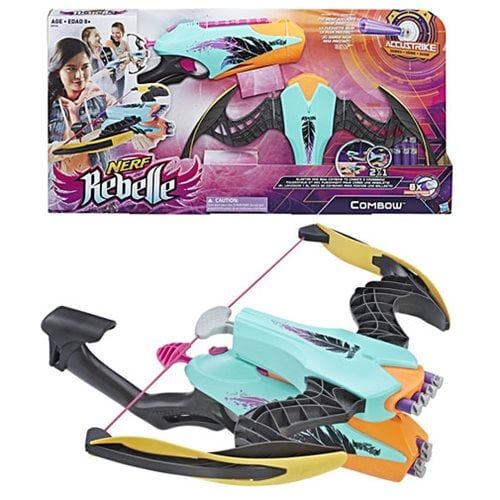 Nerf Rebelle Combow thuộc thế hệ ACCUSTRIKE 2017 mới nhất với 2 cơ chế chơi: Một cây nỏ thần 2 đầu hoặc tách làm 2 mẫu súng nhỏ hơn để chơi cùng bạn bè.